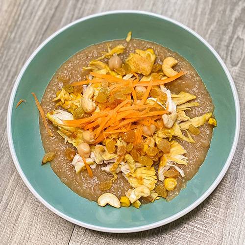 Quinoa me pulë, qiqra dhe rrush të thatë